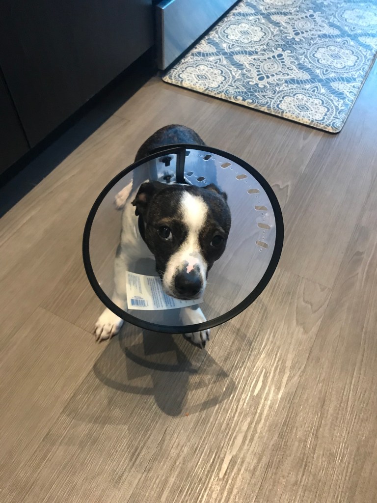 Our little man, Yoshi, got neutered today. He was such a trooper throughout, but became mopey once the cone came on and he realized he couldn’t play with any of his pup friends (little does he know that’ll be the case for a week). Anyway, who could resist that sad face?! All I wanted to do was hang with the nugget while he recovered. Also, it’s Friday. The combination of the two would have easily made December-me sit it out.