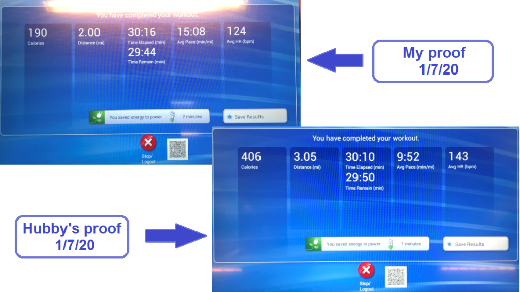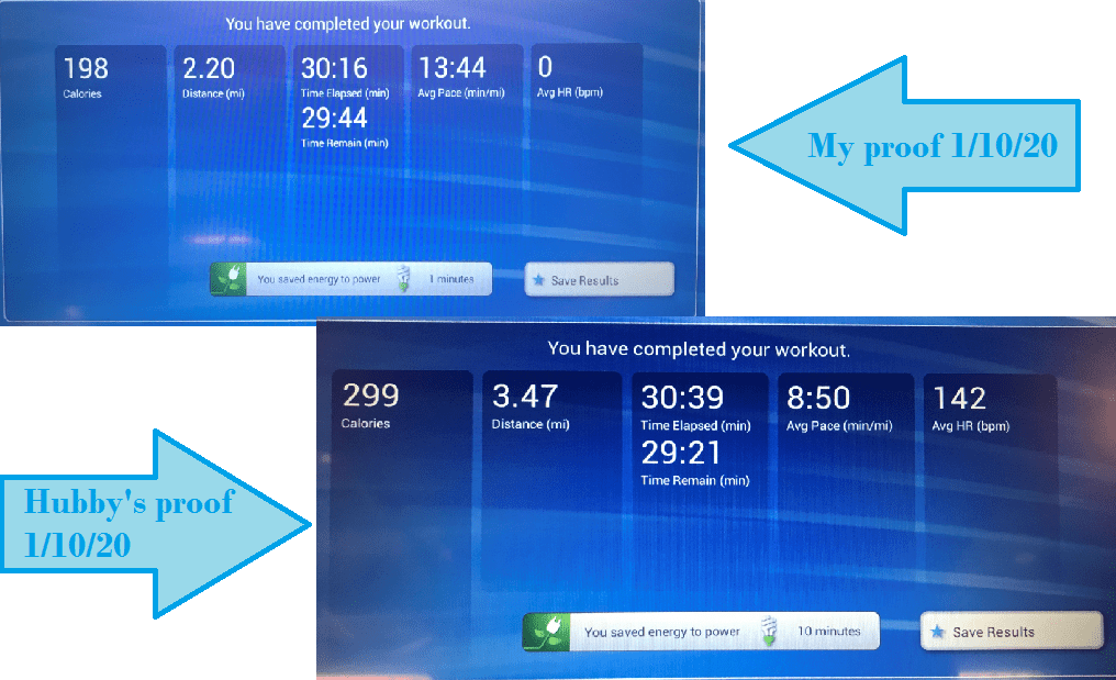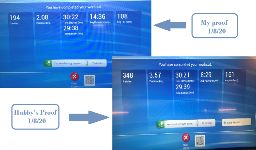 To begin, we took starting pictures of us – they’re not flattering, but they’re certainly honest (and a wake-up call if any). Every day, we’ve also decided to take a snap shot of our finished summary if we’re using a machine as proof of the work out.